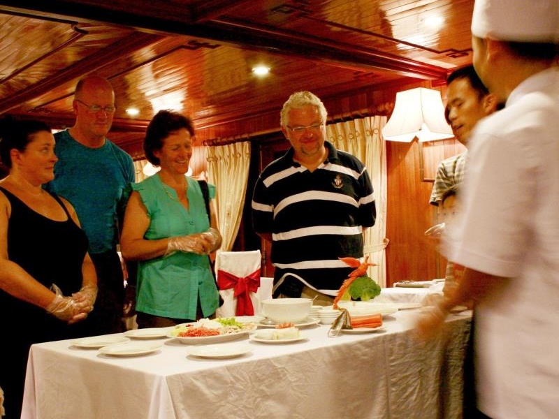 9:30: Back to the cruise, this time let’s take time to refresh and relax before checking out. You can put your bags in the luggage store and learn how to make spring rolls with short Cooking class. This time, early lunch will be served too.