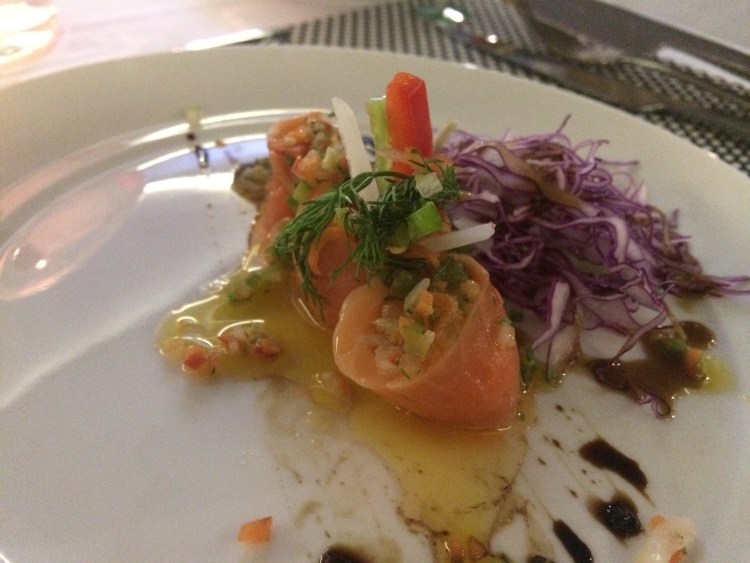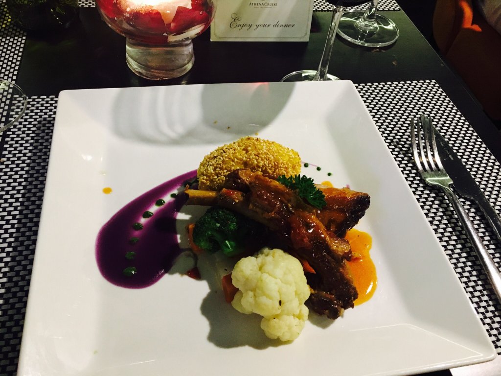 Meals are lit by the lights on each table. It's a pity because I go alone. The dinner menu is very clear and written in a very polite paper. Every cuisine was unique in taste and decoration. I like this salmon. Dinner is the main meal so they prepare quite well. I appreciate this.