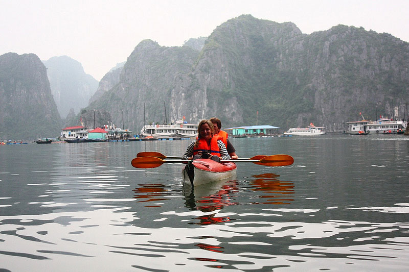 If you do not like kayaking, you can choose bamboo boat. The ferryman will take you around the area. I have been kayaking many times, so this time I go bamboo boat