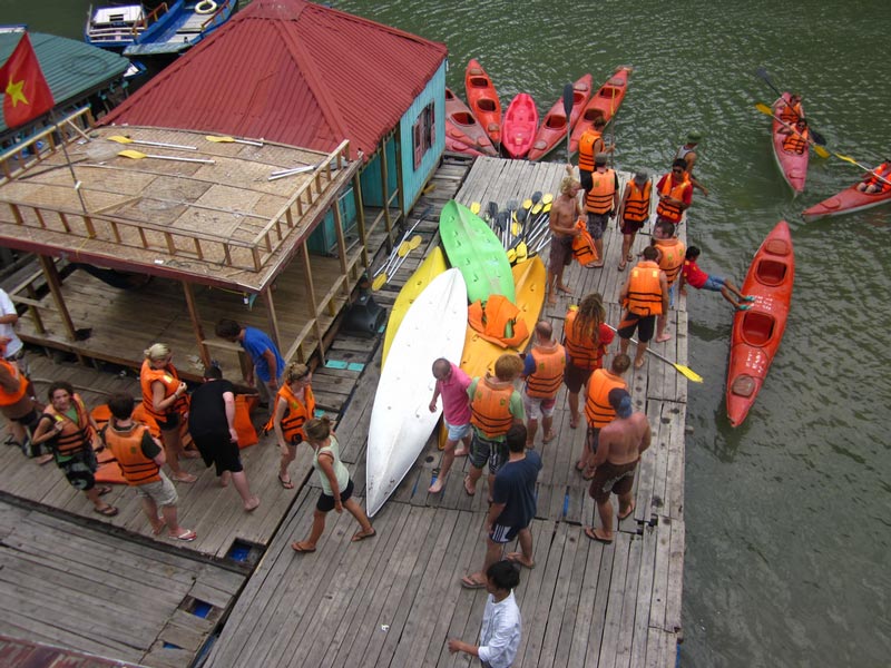 Small boats take us to the kayaking area. The guide told us some rules and we started kayaking