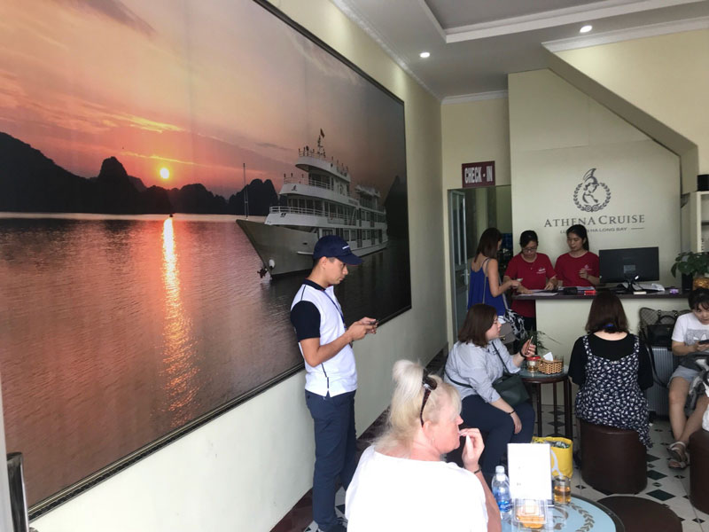The bus arrived at the boat office at 12:30. We also join people who do not use pickup from Hanoi here.