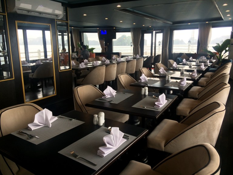 There is a spacious restaurant on the second floor. All meals will be served here, but it is very open and you can dine while watching Halong Bay.