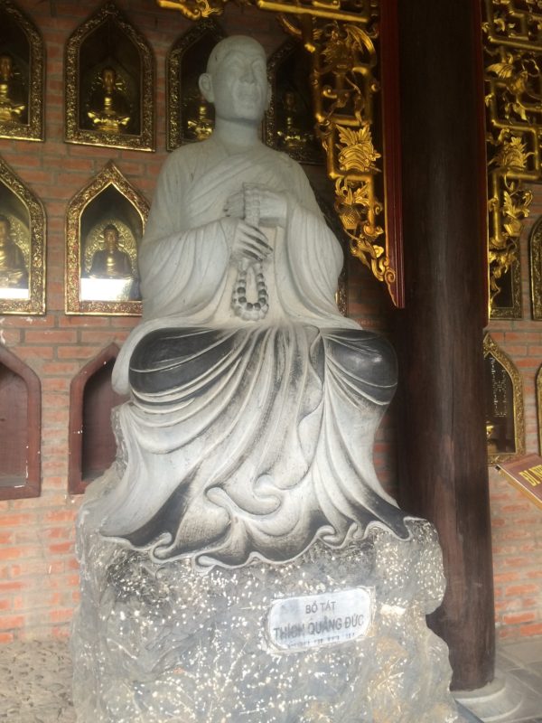This is a statue of Thich Quang Duc( TikKuanDok) – a very famous monk for loving peace and sacrified himself for Vietnam’s Buddhism during the war with American. In 1963, he committed suicide by burning in front of the American Embassy in order to lecture on high-pressure policies for Buddhists in South Vietnam. (If you want to know more about him, on the internet there are so many journals about him).