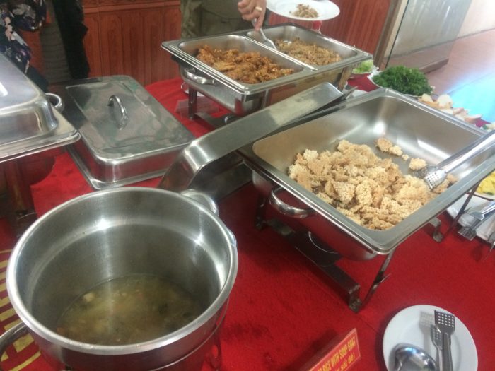 After visiting the Baidinh temple, our group got together and headed to a restaurant in Ninhbinh to have lunch. This time our lunch was buffet served with speciality of Ninhbinh – Goat meat.