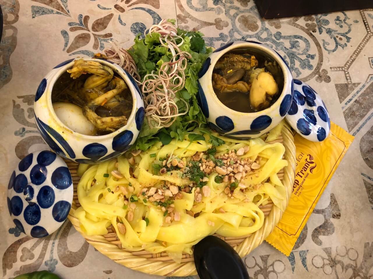 If you’re going to try just one dish, this is ‘Hoi An in a bowl’. It’s unique to the town and made from local ingredients according to a secret recipe. The origin of the dish is vague, and while some believe it was inspired by Chinese cuisine, some claim that it was modeled on Japanese culinary tradition. What’s special about it? this is a noodle consisting of noodles made from fresh, locally grown rice, lye solution made with ashes of local trees, and water from the local well (Ba Le). Wood ash from Melaleuca trees on the nearby Cham islands is mixed into this water. Along with the steamed rice noodles, a bowl of Cao lầu also consists of thinly sliced roasted pork (char siu), greens, bean sprouts, and just a splash of flavorful stock. This is finished off Vietnamese-style: with a spoonful of broth, chili, and lime. Superb!