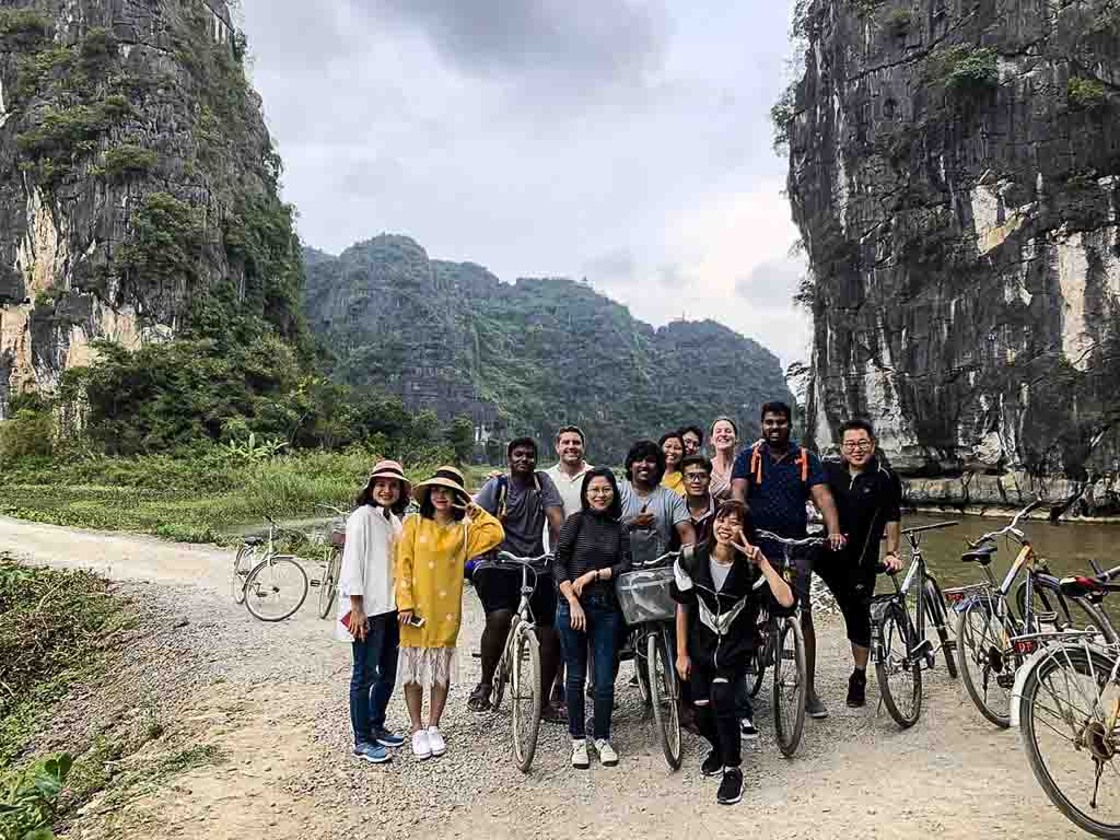 After lunch, rest a little. Then, visitors get on small boats. Ferryman will take guests to visit the scenic landscape of the majestic mountains, the fields in the triangle cups. Continuing the journey, travelers will bike to explore the quaint village, immense plains, rivers or natural rocky countryside of Vietnam. It takes about 1 hour for this choice with a total distance of about 5km. shuttle bus take guests Come back hanoi city. Arrive at your hotel in Hanoi’s Old Quarter about 18:00